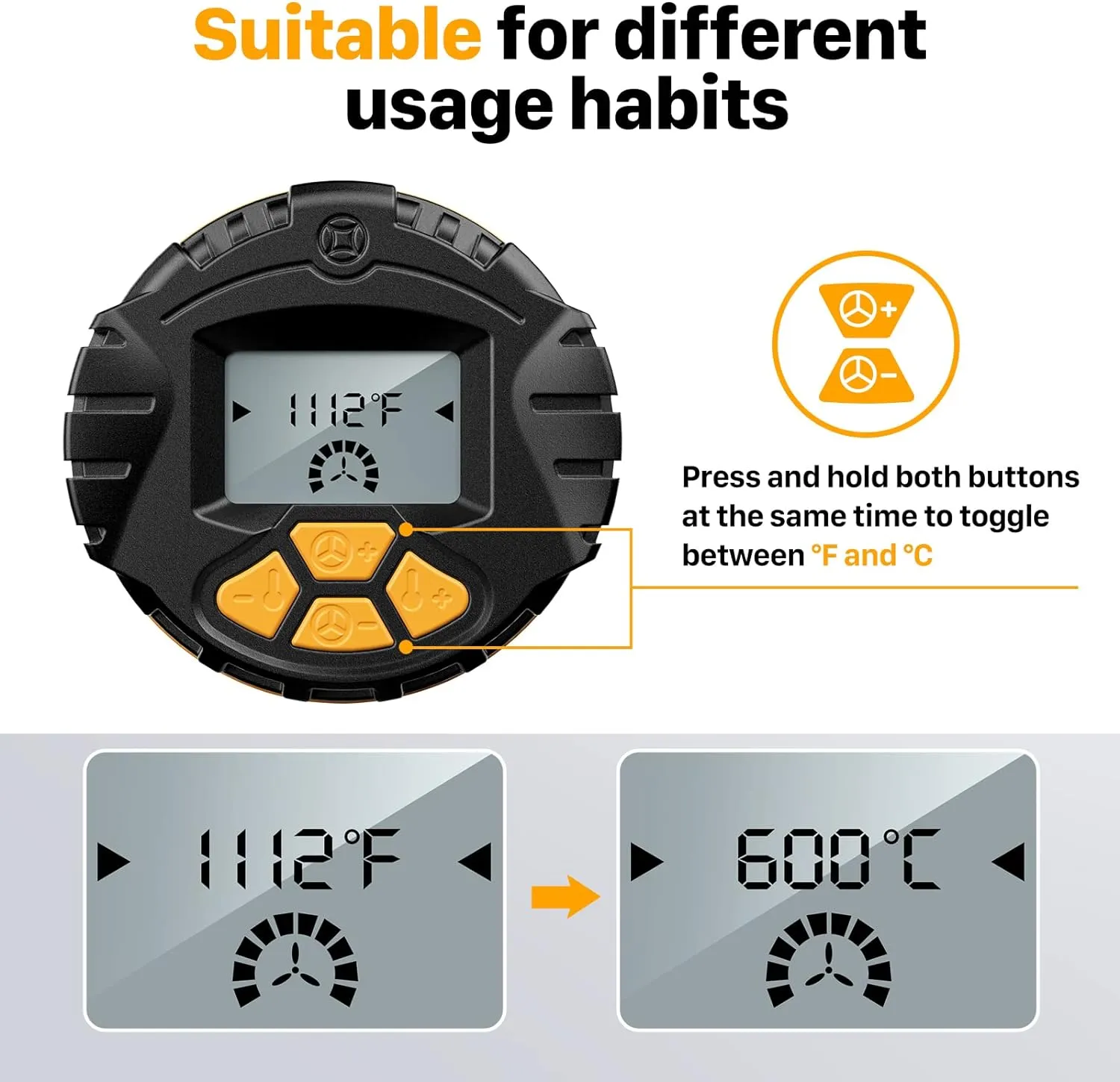 Precision Control: Integrated LCD digital display allows for real-time temperature monitoring and precise adjustments between 122°F – 1112°F (50°C – 600°C).